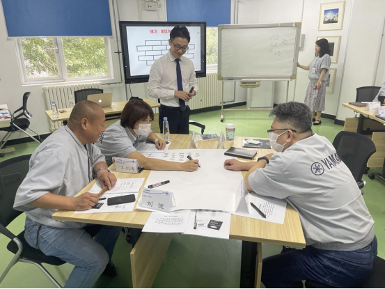 趙老師通過真實(shí)案例導(dǎo)入課程,運(yùn)用“推論階梯”傳授主動(dòng)溝通的意識(shí),以“看視頻、學(xué)案例、分析問題”的教學(xué)手法引導(dǎo)大家逐步樹立“自主性溝通”的態(tài)度,并通過大量小組研討練習(xí),讓大家體驗(yàn)到波長(zhǎng)、詢問、理解等溝通技巧的奇妙。