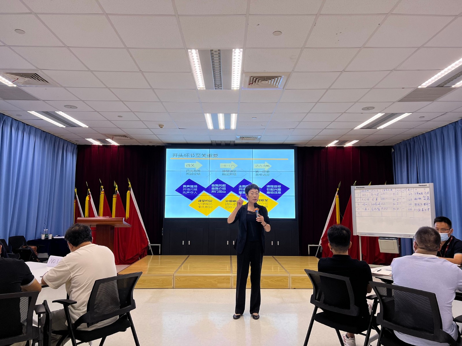 再者,為了精進(jìn)表達(dá),張老師除了鍛煉學(xué)員在邏輯上的表達(dá),更是在講授的過(guò)程中側(cè)重說(shuō)明“神形兼?zhèn)洌L(fēng)采卓越”。具體示范了眼法、聲法、手法、步法、說(shuō)法的實(shí)際應(yīng)用技巧及過(guò)程中的注意事項(xiàng)也帶領(lǐng)大家進(jìn)行了現(xiàn)場(chǎng)的演練,幫助大家呈現(xiàn)出更好的風(fēng)范。
